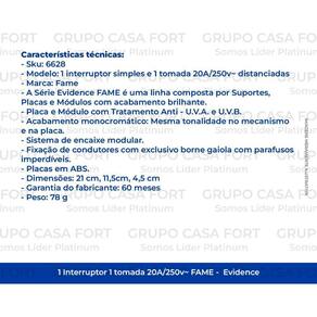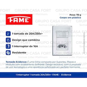 Conjunto 4X2 Interruptor Simples + Tomada Evidence Fame Luxo