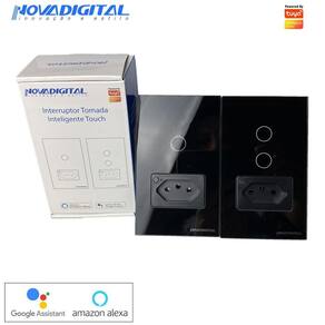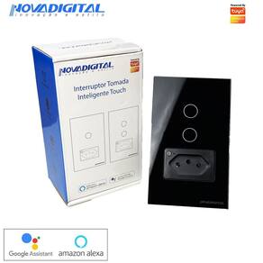 Interruptor e tomada inteligente wi-fi de 2 botões touch na cor preta da novadigital Produto com 3 meses de garantia