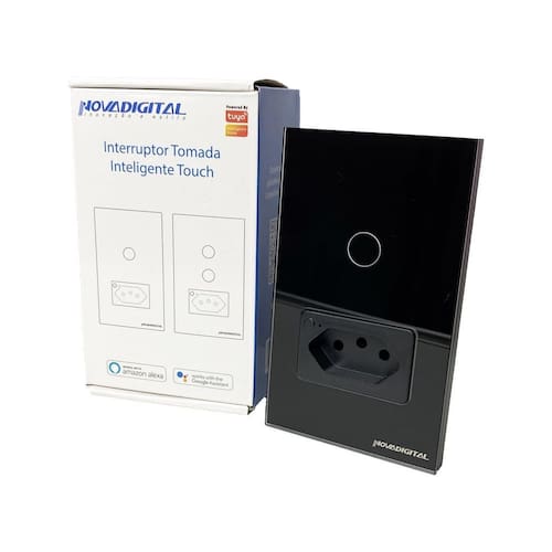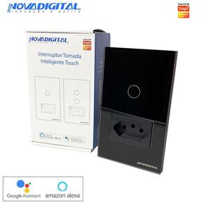 Interruptor e tomada inteligente wi-fi de 1 botão touch na cor preta da novadigital Produto com 3 meses de garantia