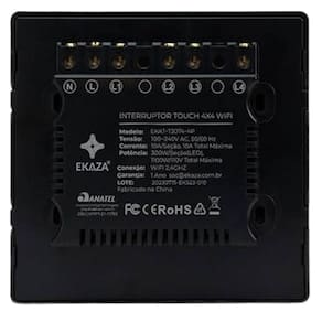 Touch Inteligente Wi-fi 4 Botões Ekaza 4x4 Preto Controle sua iluminação de forma inteligente e prática O Inteligente Smart Wi-fi 4 Botões Ekaza 4x4 Preto da Ekaza é a solução perfeita para quem busca automatizar o controle de iluminação em qualquer ambiente. Com design moderno na cor preta, este possui conectividade Wi-Fi, proporcionando a possibilidade de controlá-lo remotamente, oferecendo praticidade e conforto para o seu dia a dia. Diferenciais: Conectividade Wi-Fi e virtual: Controle seu de qualquer lugar através do seu smartphone, de forma simples e rápida, além de economia de energia. Design Moderno: A cor preta e o acabamento sofisticado se adequam a qualquer ambiente, agregando um toque de elegância. Funcionalidade Inteligente: Compatível com assistentes virtuais, como Alexa e Google Assistant, para facilitar ainda mais o seu controle de iluminação. Mais sobre o Produto: Controle Remoto: Acione suas luzes à distância, sem precisar se deslocar até o . Programação de Horários: Programe o funcionamento das luzes de acordo com a sua rotina diária. Integração com Assistentes Virtuais: Controle por comandos de voz, tornando a experiência ainda mais prática e tecnológica. Dicas de Uso: Para instalar o Inteligente Smart Wi-fi 4 Botões Ekaza 4x4 Preto da Ekaza, siga as instruções do manual incluído no produto. Conecte-o à rede Wi-Fi e baixe o aplicativo correspondente para começar a usufruir de todas as funcionalidades oferecidas. Ficha Técnica: ESPECIFICAÇÕES: Tensão: Bivolt Automático 100 240Vca Corrente máxima: 10amp Potência: 800W/Seção Incandescente 1100W/110v Total máxima Dimensões: 120x120x38mm padrão 4x4 CONECTIVIDADE: Wi-fi: 2,4 GHz ASSISTENTES VIRTUAIS: Alexa Echo, Echo dot, Echo Show Google Assistente Nest, Nest Mini, Nest Hub APLICATIVOS: Disponíveis para Android e IOS Tuya, Smart Life, Ekaza, Novadigital e sistemas compatíveis CONTEÚDO DA EMBALAGEM: 1x Inteligente 1x Espelho 1x Manual Necessário ter ou providenciar a rede Wi-fi 2,4GHz, com alta capacidade interna para administração de dispositivos e com boa distribuição do sinal no local. Com a oscilação na conexão do dispositivo, pode acarretar falha na resposta aos comandos via aplicativo, assistentes de voz e não execução de rotinas automáticas agendadas . Consulte um técnico da sua operadora.