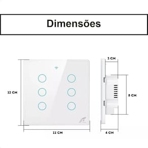 Esse interruptor inteligente opera em uma temperatura de -15C a 40C, sendo adequado para diversos ambientes. Suas medidas são 120 x 32 x 120mm, garantindo um tamanho compacto e discreto.