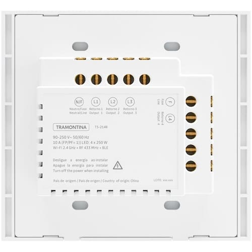 Necessita fio neutro para a instalação. Interruptor Touch Smart 4x4 Tramontina Branco com 4 Canais