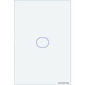 Interruptor Touch Smart Tramontina Branco Com 1 Canal Interruptor Touch Smart Tramontina Branco com 1 Canal Ilumine sua casa de forma inteligente e conectada com o interruptor touch smart Tramontina branco com 1 canal! Com esse interruptor, você pode controlar a iluminação da sua casa de onde estiver e por comandos de voz, via Alexa e Google Assistente, criando cenas e rotinas inteligentes que podem ser acionadas por sua localização, previsão do tempo, agendamento e muito mais! Seu design é sofisticado e moderno, conta com painel em vidro na cor branca, botão touch retro iluminado com LEDs azuis, que possibilita comandos com toque suave ou com um controle. É bivolt, tem corrente máxima é de 10 amperes e precisa de fio neutro para a instalação e rede Wi-Fi de 2.4 giga hertz. O interruptor possui bluetooth para auxiliar na configuração no aplicativo e aceita comunicação por rádio frequência 433 mega hertz, o que permite o acionamento com controles remotos. Mais praticidade, conforto e segurança na sua casa. Adquira agora mesmo e comece a viver uma experiência de iluminação inteligente e conectada!