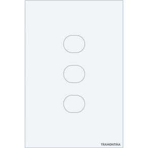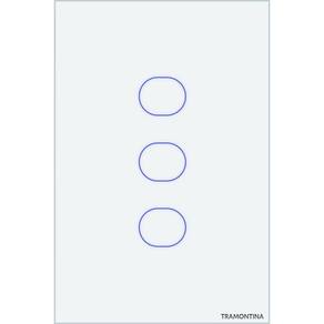 Interruptor Touch Smart Tramontina Branco Com 3 Canais Interruptor Touch Smart Tramontina Branco com 3 Canais Tenha o controle da iluminação da sua casa na palma da sua mão com o interruptor smart touch Tramontina branco com 3 canais! Com ele, você pode criar cenas e rotinas inteligentes que se adaptam ao seu dia a dia, como acionar a iluminação de acordo com a luz do dia, previsão do tempo ou geolocalização. E o melhor: você pode controlar tudo de onde estiver, seja por meio de comandos de voz, via Alexa ou Google Assistente, ou pelo aplicativo exclusivo da Tramontina. Com esse sistema inteligente, você pode simular presença na sua casa, garantindo mais segurança para você e sua família. Seu design é sofisticado: tem painel em vidro na cor branca e botões touch retro iluminados com LEDs azuis, que dão um toque moderno e elegante para a decoração da sua casa. Ele é bivolt e necessita de fio neutro para a instalação, além de uma rede Wi-Fi de 2.4 giga hertz. O interruptor também possui bluetooth para auxiliar na configuração no aplicativo e aceita comunicação por rádio frequência 433 mega hertz, permitindo que você o acione por meio de controle remoto. Com o interruptor smart touch Tramontina, você terá mais praticidade, segurança e sofisticação em um único produto. Adquira já o seu e transforme a sua rotina!
