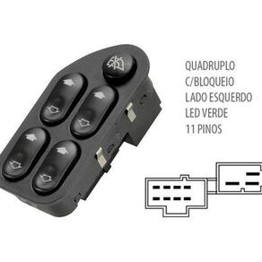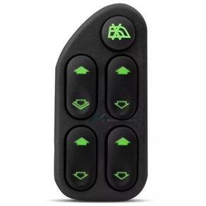 Descrição: Marca: Diretec. Código: DTC2193 Posição: Dianteiro Esquerdo (Motorista). Interruptor de vidro elétrico Ford (quádruplo) com bloqueio - lado esquerdo. Cor do led = verde