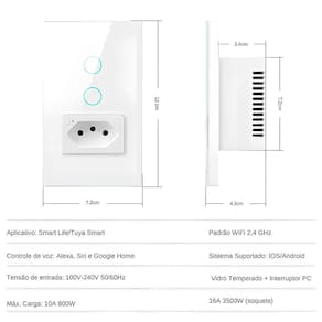 Conectado via Wi-Fi, ele dispensa o uso de hubs adicionais, tornando a automação da sua casa simples e acessível. Seu acabamento em vidro temperado branco não apenas embeleza o ambiente, mas também garante durabilidade e resistência. Características Técnicas: Marca: Avatto. Conectividade: Wi-Fi 2,4 GHz . Compatibilidade: Alexa, Google Home e aplicativos de automação Smart Life/Tuya . Funções: Controle remoto de iluminação e dispositivos via aplicativo. Tomada integrada para conectar aparelhos eletrônicos. Agendamento e temporização. Design: 2 botões touch em vidro temperado, com luz indicativa LED. Instalação: Fácil substituição de interruptores convencionais, compatível com caixas 4x2. Cor: Branco. Diferenciais do Produto: Automação Simples: Controle luzes e dispositivos de qualquer lugar pelo smartphone. Comando Por Voz: Integração perfeita com assistentes virtuais, oferecendo praticidade total. Design Sofisticado: Vidro temperado com acabamento premium que agrega elegância ao ambiente. Tomada Integrada: Mais versatilidade para conectar eletrônicos diretamente no interruptor. Funções Inteligentes: Agende horários para ligar/desligar luzes ou dispositivos, otimizando o consumo de energia. Indicado Para: Quem deseja iniciar ou expandir a automação residencial de forma prática. Ambientes residenciais ou comerciais que valorizam design e funcionalidade. Usuários que buscam maior controle sobre o consumo de energia. Avatto: Inteligência e Sofisticação Para Sua Casa Experimente o conforto e a praticidade de um lar conectado com o Interruptor Inteligente Avatto. Atualize sua rotina e torne sua casa ainda mais funcional e moderna Adquira já o seu Marca: Avatto
