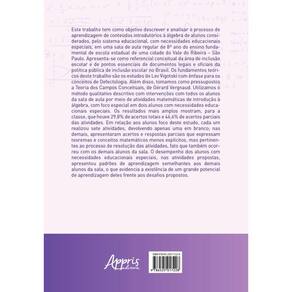 Este trabalho tem como objetivo descrever e analisar o processo de aprendizagem de conteúdos introdutórios à álgebra de alunos considerados, pelo sistema educacional, com necessidades educacionais especiais, em uma sala de aula regular de 8º ano do ensino fundamental de escola estadual de uma cidade do Vale do Ribeira – São Paulo. Apresenta-se como referencial conceitual da área de inclusão escolar e de pontos essenciais de documentos legais e oficiais da política pública de inclusão escolar no Brasil. Os fundamentos teóricos deste trabalho são os estudos de Lev Vigotski com ênfase para os conceitos de Defectologia. Além disso, tomamos como pressupostos a Teoria dos Campos Conceituais, de Gérard Vergnaud. Utilizamos o método qualitativo descritivo com intervenções com todos os alunos da sala de aula por meio de atividades matemáticas de introdução à álgebra, com foco especial em dois alunos com necessidades educacionais especiais. Os resultados mais amplos mostram, para a classe, que houve 29,8% de acertos totais e 46,6% de acertos parciais das atividades. Em relação aos alunos foco deste estudo, cada um realizou sete atividades, devolvendo apenas uma em branco; nas demais, apresentaram acertos e respostas parciais que expressam teoremas e conceitos matemáticos menos explícitos, mas pertinentes ao processo de resolução das atividades, fato que também ocorreu com os demais alunos da sala. O desempenho dos alunos com necessidades educacionais especiais, nas atividades propostas, apresentou padrões de aprendizagem semelhantes aos demais alunos da sala, o que evidencia a existência de um grande potencial de aprendizagem deles frente aos desafios propostos. Ean: 9786525017228