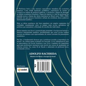 O Professor Iorio é dos maiores especialistas mundiais em economia austríaca. Com sólida formação acadêmica, experiência de ensino e vivência na análise de políticas públicas, o professor é figura de destaque no debate econômico brasileiro. Digno de registro é o fato do professor ter mantido acesa a chama das ideias austríacas no Brasil entre 1980 e 2000, período em que poucos brasileiros sabiam da existência desse poderoso instrumental analítico. Hoje as ideias austríacas são bem populares em amplos segmentos da sociedade, notadamente entre os grupos mais jovens apoiadores de políticas que aumentem a liberdade de escolha dos indivíduos. Dessa maneira esse livro é essencial para aumentar o background teórico e fornecer instrumental analítico, possibilitando que esse jovens tenham sucesso em debates com representantes de outras correntes de pensamento econômico. Por fim, é fundamental destacar que o professor ressalta a importância da moral e da cultura numa economia de mercado. Livro indispensável para os apreciadores de Escola Austríaca, esse livro é também um importante guia para professores ensinarem essa escola nos cursos de graduação em ciência sociais. Eu, como fã de Hayek e admirador do professor Iorio, recomendo o livro. Adolfo Sachsida Ministro de Minas e Energia do Brasil