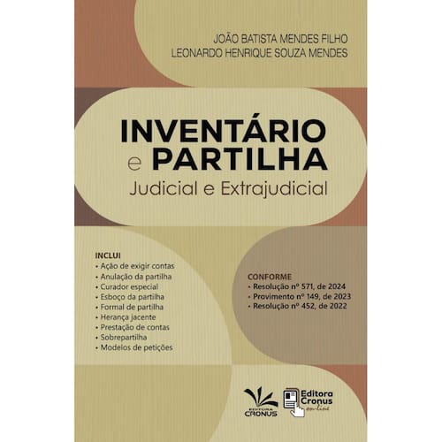 É com satisfação que lançamos esta edição dedicada exclusivamente ao Inventário e à Partilha, em suas modalidades judicial e extrajudicial, inteiramente revista à luz das recentes inovações procedimentais. O presente volume examina, de forma sistemática e prática, o procedimento de inventário desde a nomeação do inventariante até a homologação da partilha , respeitando tanto o rito contido no Código de Processo Civil (arts. 610 a 673) quanto as regras de abertura extrajudicial, agora disciplinadas pela Resolução CNJ 571/2024. Tentamos, em cada capítulo, alinharmos a descrição dos atos, modelos de petições e as melhores práticas para garantir celeridade, segurança jurídica e observância do contraditório. Confiamos que este volume seja ferramenta indispensável para advogados, serventuários, magistrados, e demais profissionais do ramo, para uma condução coerente dos inventários e partilhas. CONFORME Resolução n 571, de 2024 Provimento n 149, de 2023 Resolução n 452, de 2022