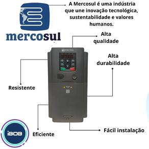 Características técnicas: - marca: mercosul; - aplicação: compressores, extrusoras, esteiras transpostadoras, aplicações hvac, ventilação e bombeamento; - tensão alimentação: 380v; - tamanho: m2; - sobrecarga natural a : 32; - sobrecarga pesada a : 25; - sobrecarga normal kw : 15; - sobrecarga pesada kw : 11; - frequência de saída: 0-400hz; - método de controle: v/hz e vetorial sensorless svc; - faixa de ajuste: 1:100; - capacidade de sobrecarga: 150% da corrente nominal: 1 minuto, 180% da corrente nominal: 10 segundos, 200% da corrente nominal: 1 segundo; - proteções: mais de 30 proteções de falha: sobrecorrente, sobrecarga, sobretensão, subtensão, sobreaquecimento, perda de fase e muitas outras; - funções de software: auto ajuste da tensão quando a rede varia ou quando há perda momentânea da rede;auto tunning estático e rotativo do motor;flying start permite se acoplar ao motor em movimento; - proteção: ip20; - temperatura: - 10ºc - 50ºc, com desclassificação acima de 40ºc; - unidade de frenagem: externa; - filtro emc: filtro interno c3, atende a norma iec61800-3 c3 filtro externo opcional, atende a norma iec61800-3 c2.