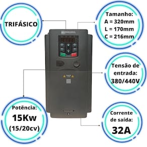 descrição do fabricante: inversor de frequência trifásico md200a 15cv 20cv 11/15kw 380v