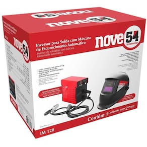Inversor De Solda Com Máscara De Escurecimento Im 120 - Nove54 A máquina de solda do tipo inversora da nove54 é leve e compacta e apresenta um baixo consumo de energia, sendo possível utilizá-la tanto em locais com tensão de 127v quanto em locais com rede 220v e seu chaveamento ocorre de maneira 100% automático. O inversor para solda im 120 conta com 120 a, sendo indicado para serviços de solda para montagem e reparos de estruturas metálicas em geral, utilizando eletrodos aws e6013 e aws e7018, dentre outros até 3,25 mm (220 v) e 2,5 mm (127 v). O inversor possui display digital, que permite regulagens mais precisas e sensor de sobreaquecimento, evitando possíveis danos a peça a ser reparada ou montada e ao equipamento. Sua máscara possui o sistema de escurecimento automático, o que torna o processo de solda mais prático, trazendo maior visibilidade do trabalho. Como referência em inovação, a máquina para solda proporciona mais tecnologia, segurança e praticidade.- mais conforto e praticidade na realização das suas atividades de solda, graças a tecnologia agregada no inversor;- sua máscara de solda de escurecimento automático proporciona maior precisão na execução das tarefas necessárias;- suportando tensões de entrada de 127v e 220v com chaveamento automático, o inversor de solda nove54 evita possíveis acidente e danos ao equipamento; Conteúdo da embalagem: 1 conjunto porta-eletrodo (cabo com engate rápido de 9 mm e porta-eletrodo), 1 conjunto garra obra (cabo com engate rápido de 9 mm e garra obra) e 1 máscara de escurecimento automático tonalidade 11, msn 011 nove54.Especificações técnicas:tipo de fonte: inversor;faixa de ajuste de corrente: 127 v 10 a - 100 a / 220 v 10 a - 120 a;diâmetro máximo de eletrodo: 127v até 2,5 mm / 220v até 3,25 mm;fator de trabalho: 127 v: 100 a - 20% / 58 a - 60% / 45 a - 100%; 220 v: 120 a - 20% / 70 a - 60% / 54 a - 100%;tipo de refrigeração: forçada (ventilador);corrente de entrada: 127 v: 32 a / 220 v: 25,9 a;tensão de entrada: 127v / 220v com chaveamento automático;frequência: 50 hz / 60 hz;corrente: 120 a;altura (cm): 17,00;largura (cm): 10,50;comprimento (cm): 21,00;peso (kg): 2,100 (sem máscara);