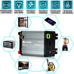 VANTAGENS DO PRODUTO: Com o inversor de voltagem da Tech One, é possível ter uma tomada dentro do seu carro, caminhão, motorhome etc. O aparelho transforma a corrente direta do veículo em corrente alternada (com onda modificada), criando inúmeras possibilidades, tais como: