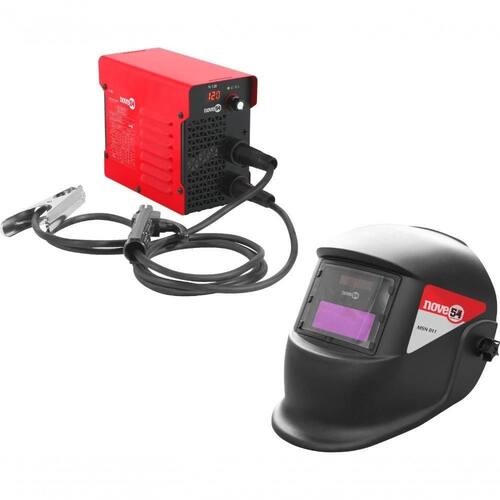 1 Inversor. Acompanha: 1 conjunto porta-eletrodo (cabo com engate rápido de 9 mm e porta-eletrodo), 1 conjunto garra obra (cabo com engate rápido de 9 mm e garra obra) e 1 máscara de escurecimento automático tonalidade 11, MSN 011 NOVE54.