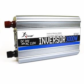 Inversor de tensão veicular Knup KP-547 3000W, transforma 24V em 110V Aparelho que faz a inversão de voltagem ou seja, ao ligar em qualquer bateria de 24V ele transforma a corrente para 110V, onde vai te permitir ligar qualquer aparelho com até 3000W de potência! Isso mesmo! Pode ser usado em veículos que possuem voltagem de 24V. Ex. carros, barcos, jet ski entre outros. Equipamento dotado de alta tecnologia sendo a sua CPU interna a responsável por gerenciar de forma inteligente a tensão dos aparelhos nele ligado. Além de ser utilizado em veículos, poderá ser útil em viagens, acampamentos, para ter dentro do seu carro, para usar em lugares onde não ha eletricidade, em casos de falta de energia elétrica, entre outras aplicações. Nao indicado para alguns aparelhos com motores: ar condicionado, compressores, freezers, geladeiras, chuveiros e qualquer aparelho que consuma mais de 3000W. OBS: Ao ligar o aparelho, verifique se está com os plugs ligados corretamente, um plug invertido poderá causar danos irreversíveis ao seu aparelho. Especificação: • Nível de energia • Potência de 3.000W • Transforma energia 24V para 110V • Sistema de segurança completo para proteção de seus aparelhos eletrônicos • Onda modificada • Led ligado • Botão liga e desliga (permite ligar ou desligar o inversor sem necessariamente desplugá-lo • Proteção de sobrecarga: quando o desempenho continuo exceder a 3000 watts • Proteção térmica: Desliga automaticamente quando exceder a temperatura • Tensão CA de saída nominal: 110V • Potência de saída máxima 3000 Watts • Potência de surto (pico): 3000 Watts • Frequência de saída: 60 Hz • Eficiência máxima: superior a 80% Alguns aparelhos em que o Inversor Knup pode ser utilizado: • Celular 10 Watts • Filmadora 25 Watts • CD / Mp3 Player 35 Watts • Impressora Jato de Tinta 40 Watts • Notebook 45 Watts • DVD Player 50 Watts • Aparelho de Som 30 - 100 Watts • TV Colorida 13pol 75 Watts • Videogames 100 Watts • Amplificador Stereo 240 Watts • TV 25 pol. 250 Watts • Colchões Infláveis Elétricos 400 Watts Conteúdo da Embalagem: 1x Inversor de 3000W 24V 110V 2x Cabos de conexão, sendo 1 vermelho e 1 preto