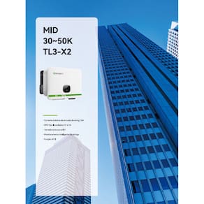 O Inversor Growatt MID 50K TL3-X2 50kW foi projetado para usinas solares comerciais de médio porte.