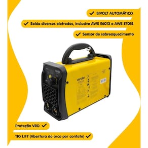 Inversor Solda Eletrodo E Tig Im125 Com Máscara - Bivolt Vonder Descrição: Potência e praticidade para seus trabalhos de solda o inversor de solda im 125 vonder oferece 120 a de potência, ideal para eletrodo revestido e tig. Com tecnologia monofásica bivolt 127 v / 220 v e seleção automática, proporciona mais segurança e eficiência. Indicado para montagem e reparos de estruturas metálicas em geral, esse inversor garante excelente estabilidade do arco, além de ser compacto e fácil de transportar. Acompanha uma máscara de escurecimento automático tonalidade 11 , proporcionando mais conforto e proteção durante o uso. Garanta já o seu e tenha mais qualidade e precisão na solda Características: - indicado para montagem e reparos de estruturas metálicas em geral; - soldagem com eletrodo e tig; - máscara de escurecimento automático tonalidade 11 inclusa; - compacto e fácil de transportar; - excelente estabilidade do arco. Especificações técnicas inversor de solda: - tipo de fonte: inversor - processo de solda: eletrodos revestidos e tig - faixa de ajuste de corrente a : eletrodo e tig: 10 a - 120 a 220 v / 10 a - 100 a 127 v - tipo de corrente de saída da máquina: corrente contínua direct current - cc ou dc - diâmetro máximo do eletrodo recomendado: 127 v até 2,5 mm / 220 v até 3,25 mm - fator de trabalho: eletrodo e tig: 220 v 120 a - 20% / 70 a - 60% / 55 a - 100% - 127 v 100 a - 20% / 58 a - 60% / 45 a - 100% - corrente de entrada a : 32 a 127 v / 24 a 220 v - 32 a 127 v / 24 a 220 v a - potência absorvida: 5,3 kva 220 v / 4 kva 127 v - classe de isolação: grau f - índice de proteção: ip 21 - tipo de refrigeração: ventilação forçada - segue norma s : iec 60974-1 - tensão em vazio: 80 v 220 v / 75 v 127 v 15 v vrd - tensão de entrada v : 127 v - 220 v - seleção automática - frequência: 50 hz / 60 hz - dimensões c x l x a : 280 mm x 115 mm x 190 mm - massa aproximada peso :2,5 kg Especificações técnicas máscara de escurecimento: - ajuste de tonalidade: 11 - tonalidade no estado claro: 3 - tempo de ativação claro-escuro: 1/15.000s - tempo de ativação escuro-claro: 0,25 a 0,45s - área de visão: 90mm x 35mm - alimentação: bateria de lítio/células solares - material: polipropileno - ca: 46.478 Itens inclusos: - 01 inversor - 01 conjunto de garra obra e cabo com engate rápido de 9mm - 01 conjunto porta-eletrodo e cabo com engate rápido de 9 mm - 01 alça tiracolo - 01 máscara de escurecimento automático msn 011 vonder inversor para solda: - inversor para solda: 90 dias de legal + 9 meses de contratual; - a não cobre erros de instalação ou mau uso. máscara para solda: - máscara para solda: 90 dias de legal + 3 esses de contratual; - a não cobre erros de instalação ou mau uso. No grupo carrosomshop pepe parts, entendemos a paixão que os motoristas têm pelos seus veículos. É por isso que nos dedicamos a fornecer os melhores acessórios e peças para melhorar seu carro e tornar cada viagem ainda mais emocionante. Explore nossa loja e descubra uma variedade de produtos automotivos que vão desde faróis de milha, multimídias, molduras de painel, alto falante, etc até peças de reposição essenciais. Descubra o que você precisa para elevar seu veículo a um novo patamar Junte-se a nós e experimente o compromisso do grupo carrosomshop pepe parts com a qualidade e a satisfação do cliente. Estamos ansiosos para atender às suas necessidades automotivas com produtos especializados e atendimento excepcional. Garanta já o seu inversor para solda com máscara de escurecimento automático. Marca: Não Informado