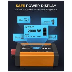 Inversor de alta potência de 2.000 W Prov Fornece 2.000 W de saída contínua de CC para CA, capacidade de surto de até 4.000 W, apresentando com 3 tomadas CA e uma porta de carregamento USB para converter a energia da bateria de 12 V CC para 110 V CA padrão, ótimo para eletrodomésticos CA ou grandes dispositivos elétricos em viagens, acampamentos ou locais de trabalho, como luz, TV, freezer, laptop, DVD player, PSP, câmera ou celular , iPad de recarga, etc.