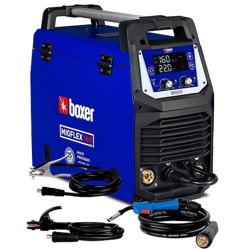 Produto: Inversora de solda Multiprocesso 160A para Eletrodo Mig e Tig - MIGFLEX 160BV Marca: Boxer Voltagem: 110V/220VDescrição: A Inversora de solda Multiprocesso 160A para Eletrodo Mig e Tig MIGFLEX 160BV da Boxer é uma inversora de solda multiprocessos indicada para funilaria, reparos e trabalhos produtivos. Com tecnologia inversora, ela oferece menor consumo de eletricidade e ajuste de parâmetros através do display e painel. A MIGFLEX 160BV é capaz de soldar a uma corrente de 100 Amperes sem interrupção. Com saída de Corrente Contínua CC/DC , permite ajuste da velocidade de arame/corrente de solda e tensão. Pode utilizar rolos de arame de 1KG a 5KG e solda Eletrodos Revestidos E-6013, E-7018, Inox e Ferro Fundido. é robusta, pesando 13KG, e adequada para chapas de 0.75mm a 4.8mm em MIG/MAG e 2mm a 4mm em Eletrodo Revestido. Características: • Bivolt automática: Reconhecimento de voltagem automática, permitindo soldar em rede 127V ou 220V. • Possui projeto de potência multi-placas: Projeto com várias placas independentes, que facilita a manutenção e barateia o conserto. Não condenando a placa principal completa. • Trabalhe o dia todo sem parar de soldar: Com um ciclo de trabalho projetado para maior autonomia. Podendo soldar o dia todo com uma corrente de 100A. • Display LCD grande: Placa de controle com micro processador permite pré-regulagem dos parâmetros via display LCD, corrente e tensão de solda são visíveis para regulagem mesmo sem soldar em modo Eletrodo ou TIG. Além disso a é acompanhada de Tocha MIG 150A 3m, Cabo porta eletrodo, Cabo garra de aterramento e Roldana Canal V para aço carbono.Especificações: Frequência: 50/60 hzDisplay Digital: simSIMEngate: Dinse 13mmEspessura Arame: 0.8mmespessura Chapa: até 4.8mmespessura Eletrodo: 3.25mmclasse de proteção: IP21SClasse de isolação: FRefrigeração: forçada. MMA Eletrodo revestido Ciclo de trabalho: - 125A 34% 110V - 160A 15% 220V - 95A 60% 110V - 110A 60% 220V - 70A 100% 110V - 100A 100% 220V Arc Force: sim, integrado não ajustávelHotstart: Sim, integrado/não ajustávelAntistick: Sim Mig/magciclo de trabalho: - 125A 45 % 110V - 160A 15% 220V - 110A 60% 110V - 115A 60% 220V - 80A 100% 110V - 105A 100% 220V Avanço manual do arame: simGatilho 2T/4T: sim Tigciclo de trabalho: - 125A 45 % 110V - 160A 15% 220V - 105A 60% 110V - 110A 60% 220V - 95A 100% 110V - 100A 100% 220V Lift: simItens Inclusos: Tocha MIG 150A 3mCabo porta eletrodoCabo garra de aterramentoRoldana Canal V para aço carbono Marca: Não Informado