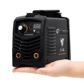 Máquina Inversora de Solda DC Digital Usk V-AK230 Mini 110V - Produto compacto e com display digital, fácil de guardar, carregar e utilizar - Fabricado com IGBT: tem alta eficiência, maior economia de energia e rápido chaveamento - Ideal para pequenos e médios serviços em várias situações Especificações: - Voltagem: 110V - Amperagem: 17A à 235A - Potência: 4,1 Kw - Tipo de solda: inversor do IGBT - Refrigeração: a ar - Tamanho do cooler: 80mm - Grau de proteção: IP21S - Pode soldar eletrodos de até 3.2mm - Uso intermitente: 4mm - Peso da máquina: 2 kg - Peso bruto com acessórios: 3,5 kg Marca: Não Informado Ean: 735201039305