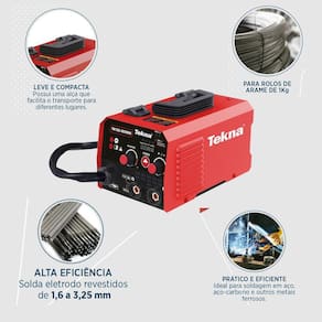 Inversora solda migmma tekna tw120i profissional + arame 2kg Voltagem: 220v Máquina de solda inversora tekna tw120i-migmma + arame mig 0,8mm carretel 2kg sem gas vonder