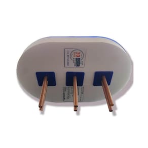 Apresentação O Ionizador Solar para piscinas de até grandes tem formato triangular, contando com 3 placas solares de 6V e 6 eletrodos de cobre.