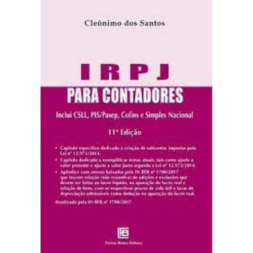 Este livro - em sua 11 edição, atualizada e ampliada, com base na legislação vigente em 13.12.2017 - foi escrito com o objetivo de oferecer aos profissionais de Contabilidade e de áreas correlatas um material de consulta permanente para suas atividades cotidianas. Essencialmente prática, a obra apresenta uma infinidade de exemplos, o que facilita o entendimento das matérias. O autor, com base em longa experiência na elaboração de boletins informativos dirigidos aos profissionais da área contábil, na assessoria de empresas e em cursos e palestras, demonstra a aplicação das normas tanto relativas ao IRPJ quanto pertinentes à CSLL, ao PIS/Pasep e à Cofins, além de focalizar, também, o Simples Nacional. O livro orienta sobre questões polêmicas e aspectos menos claros da legislação, mostrando posicionamentos e manifestações do Fisco e da jurisprudência sobre tais temas. A ideia é propiciar ao profissional da área contábil meios para minimizar riscos de autuações fiscais. Como não poderia ser diferente, a obra recepciona as alterações promovidas na legislação no que diz respeito a determinação e o pagamento do IRPJ e da CSLL, a disciplina e o tratamento tributário da Contribuição para o PIS/Pasep e da Cofins no que se refere às alterações introduzidas pela Lei n 12.973/2014, regulamentada pela IN RFB n 1700/2017. Especialmente direcionado para aqueles que não apenas calculam o montante do tributo, mas, principalmente, observam e aplicam todas as infindáveis regras de tributação das empresas, o livro contém a matéria básica de uso constante do profissional da Contabilidade comentada e analisada, em linguagem simples e clara.