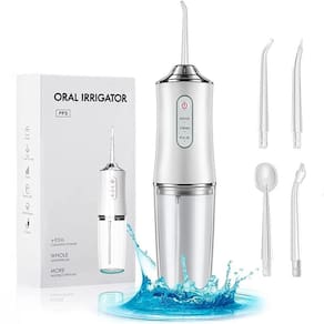 Irrigador Bucal Higiene Dental Limpador Portátil Fio Dental O irrigador oral foi desenvolvido para alcançar e higienizar locais que a escova e o fio dental não alcançam. É ótimo e recomendado principalmente a quem usa , implantes, próteses e outros procedimentos, e não consegue tirar melhor proveito do fio. Além disso, é capaz de remover restos de alimentos entre os dentes, o que ajuda a evitar placa bacteriana e possíveis cáries. Inibi o tom amarelado dos dentes e estimula a corrente sanguínea na gengiva, mantendo-a saudável. Especificações: Dentes saudáveis e hálito fresco. Limpeza profunda, prática e indolor. Três vezes mais efetivo que o uso do fio dental. Itens inclusos: - Irrigador oral. - 4 bicos diferentes para limpeza mais eficiente. - Cabo USB para carregar. Marca: Não Informado Ean: 7905309925586