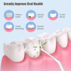 Irrigador Elétrico Jato Água Oral Limpador Dentário Bucal Especificações:- Dentes saudáveis e hálito fresco.- Limpeza profunda, prática e indolor.- Três vezes mais efetivo que o uso do fio dental.Dicas de uso:1. Limpe suavemente a unidade e o reservatório de água com um pano macio e úmido2. Esvazie e seque o tanque de água quando não estiver em uso por um longo período de tempo3. Recomenda-se carregar totalmente este irrigador oral antes da primeira utilização4. Segure a unidade na posição vertical com a ponta do bico voltada para os dentes5. Nunca submergir a unidade principal na água, nem usar embaixo do chuveiroItens inclusos:- Irrigador oral.- 4 bicos diferentes para limpeza mais eficiente.- Cabo USB para carregar