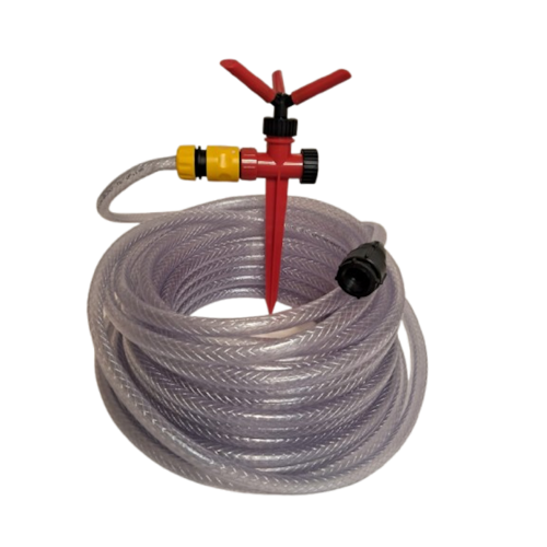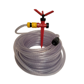Conteúdo da Embalagem: 1 Irrigador giratório tipo espiga NOVE54 + Mangueira para jardim, trançada, transparente, 20 m, VONDER + 1 engate rápido.