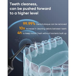 MySmile Os irrigadores orais manuais são feitos de ABS, POM e PC, resistentes à água e duráveis. Ele usa um fluxo pulsante de água e é projetado com conforto em mente. Existem 5 modos de pressão de água para escolher, para diferentes membros da família. O design compacto e portátil torna este produto fácil de usar com suportes em casa ou em movimento. O reservatório comporta até 350 ml de água por vez e é fácil de retirar, reabastecer e limpar. O irrigador oral MySmile operado por bateria será um dentista doméstico profissional para resolver uma variedade de problemas orais. Características: 1. O limpador de dentes proporciona um fluxo de irrigador bucal a jato de água. 2. O design compacto e simplificado do irrigador de bolso o torna leve também. 3. Menos de 68 dB de baixo ruído permite que você o use com conforto. 4. Bateria recarregável de longa duração permite uso contínuo quando totalmente carregada, 4 horas 5. Ele vai parar de funcionar automaticamente após 2 minutos de trabalho contínuo. Efeito: 1. O jato de água limpa e usa fio dental massageando o tecido das gengivas e estimula o fluxo sanguíneo para as gengivas. 2. Ele entra em áreas difíceis de alcançar, como dentes bem espaçados, espaços interdentários e bolsos periodontais. 3. O irrigador oral MySime ajuda a promover o hálito fresco. 4. Em comparação com o fio dental tradicional, o jato limpa até 3 vezes mais e é mais eficaz na remoção de manchas ao redor dos aparelhos. 5. Pode ser utilizado por crianças. 6. Tem uma bola de gravidade no final do tubo para sucção completa de água. - O jato de água pode ser um pouco poderoso para alguns novos clientes, o que pode causar sangramento nas gengivas com operação incorreta. Por consideração de segurança, nosso irrigador bucal é melhorado para começar a pulverizar água por mais de 3 minutos. Nos primeiros 3 minutos, é normal que o irrigador bucal não borrife água quando liga, mas não está com defeito. Lembre-se de que somente após 3 minutos o irrigador bucal funcionará. - Perda dentária ultra potente – Equipado com uma bomba forte, os aparelhos dentais apresentam frequência de pulso de 2200-3000 por minuto e pressão de água de 50-150 PSI para proporcionar fluxo de alta potência, que remove resíduos de alimentos e manchas entre os dentes e abaixo da linha da gengiva completamente, mantém seu hálito fresco e melhora a saúde da gengiva - Prevenção contra perda de volume e exibição inteligente – 3 passos para iniciar o fio dental de água, ajuda a evitar pulverização repentina de água se seus dedos acidentalmente pressionarem o botão liga/desliga; a tela indicadora OLED exclusiva exibirá o modo, temperatura da água, PPM, tempo de trabalho e energia da bateria, proporcionando uma experiência conveniente de limpeza dos dentes - GARANTIAS SEGURAS E LIMPEZA EM TODAS AS DIREÇÕES - A classe IPX 7 à prova d'água com corpo listado ETL fornece proteção dupla no interior e no exterior da máquina de fio dental, garante o uso seguro no chuveiro ou banheiro; o bocal rotativo de 360° limpa facilmente áreas ocultas que a escova de dentes tradicional e o fio dental são difíceis de alcançar e evita detritos e placa dentária - Mais modos opcionais, mais armazenamento de água – o limpador de dentes possui 5 modos de limpeza para necessidades versáteis: forte, normal, macio, pulso e infantil, fácil de definir e escolher os modos mais confortáveis para seus dentes, língua e gengiva; o tanque de água de 350 ml armazena bastante água para fio dental contínuo, uma vez que a água de enchimento é capaz de lavar os dentes completamente, não precisa encher a água várias vezes - Limpador de dentes de água multiuso – A bateria de lítio potente de 1800 mAh dura de 15 a 20 dias quando totalmente carregada; vem com uma bolsa de armazenamento de PU resistente à água para portátil em viagens; o fio dental elétrico funciona bem na limpeza sob as gengivas, fossas, fissuras, cáries dentárias, ideal para prevenir problemas orais como cárie dentária, placa, cálculo dentário, implante dentário, órtodos. ontics and periodontics titite, etc - Certifique-se de que a tampa da porta de carregamento esteja firmemente presa antes de usar; sempre coloque a ponta na boca antes de pressionar o botão ON/OFF para começar a usar o fio dental - Aviso quente: recomendamos escolher o modo macio para o primeiro uso; mantenha o tanque de água vazio durante o carregamento - O limpador de dentes de água é projetado como resistência à água IPX7, mas mantenha sempre a tampa da porta de carregamento firmemente presa para evitar que a água entre no interior da máquina, para evitar danos à bateria, erro de função e muito mais. - Sempre apoiamos você para obter ajuda se as peças estiverem faltando na embalagem.