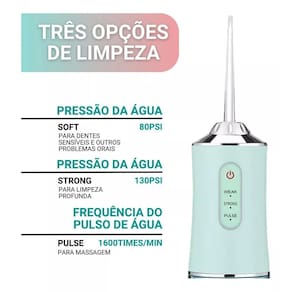 Irrigador Oral de Última Geração: Tecnologia Avançada para sua Saúde O Irrigador Dental de Jato D'Água Portátil foi desenvolvido para higienizar locais que a escova e o fio dental não alcançam. Recomendado principalmente para quem usa , implantes, coroas, próteses e outras necessidades específicas e não consegue tirar melhor proveito do fio dental. Além disso, é capaz de remover restos de alimentos entre os dentes, o que ajuda a evitar placa bacteriana e possíveis cáries. Inibi o tom amarelado dos dentes e estimula a corrente sanguínea na gengiva, mantendo-a saudável. Experimente todos os benefícios que esse produto oferece Cuide do seu sorriso Com os seus 4 bicos você poderá realizar uma limpeza completa dos seus dentes, as gengivas, a língua e as partes moles da boca. Isso permitirá que você remova a placa e as bactérias, reduza a halitose e fortaleça suas gengivas. Simples de usar Seu design leve e portátil lhe dá a praticidade que você precisa para uma limpeza fácil e eficaz. Sua higiene dental perfeita a qualquer hora, em qualquer lugar ESPECIFICAÇÕES: - Dentes saudáveis e hálito fresco; - Limpeza profunda, prática e indolor; - Três vezes mais efetivo que o uso do fio dental. - Bivolt ITENS INCLUSOS: - Irrigador oral; - 4 bicos diferentes para limpeza mais eficiente; - Cabo USB para carregar. Cores conforme disponibilidade em Marca: Não Informado Ean: 7895277400805