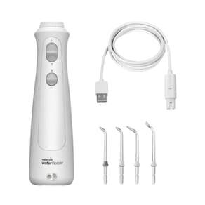 Marca: Waterpik Modelo: WP13 (Cordless Pearl) Cor: Branco Tipo de Alimentação: Recarregável via USB Voltagem: Bivolt (127/220V) Peso: Aproximadamente 363 g Dimensões: 29,46 cm (altura) x 6,45 cm (largura) x 9,45 cm (profundidade) Material: Plástico resistente e à prova d'água Certificação: Aceito pela American Dental Association (ADA) Pressão Máxima: 75 PSI Níveis de Pressão: 2 configurações ajustáveis (baixa e alta) Pulsos por Minuto: 1.450 Capacidade do Reservatório: 207 ml Tempo de Uso por Carga: Até 45 segundos contínuos Carregamento: Aproximadamente 4 horas para carga completa Tipo de Bico: Rotação de 360° para fácil alcance, inclusive nos dentes posteriores À Prova D'Água: Sim, adequado para uso no chuveiro Tecnologia: PrecisionPulse para combinação de pressão de água e pulsos, removendo até 99,9% da placa bacteriana