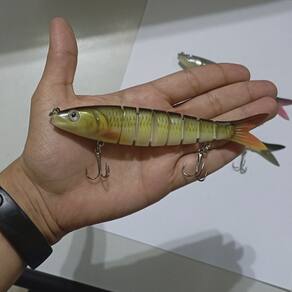 Isca de peixe artificial e articulada, ideal para pescadores que buscam maior eficiência e realismo na pescaria. Seu corpo segmentado proporciona um nado natural, imitando perfeitamente um peixe ferido e atraindo ataques mais agressivos dos predadores.