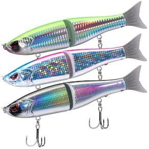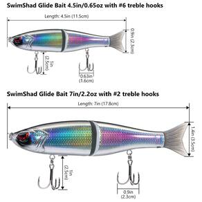 Bassdash SwimShad Glide Isca de natação articulada isca de natação pike salmão truta muskie isca, pacote com 3 - Como uma isca de afundamento lento, a isca pode ser usada para atacar toda a coluna de água; a construção de uma articulação dá um movimento notável de natação - A isca deslizante tem uma ação única de onda S e grande perfil, e pode ser controlada com pausas e giros do carretel, o que pode dar mais poder de tração que atrai peixes maiores - Com oito bolas de aço inoxidável (diâmetro da bola). 1,1 cm, 1 cm e 0,7 cm) embutidas, ao longo da parte inferior da isca de natação, para manter o equilíbrio e lançar mais distâncias, e as bolas de aço também fazem a isca barulhenta, o que será um grande fator, especialmente quando a claridade da água é baixa, em vez de ação ou cor da isca - Imitação de cor natural; olhos vívidos a laser 3D; rabo de peixe de borracha texturizada e macia para movimentos de natação mais vívidos - Aumenta suas chances de pegar aqueles Monster Bass que simplesmente não caem em outras iscas; fortemente visados por peixes do tamanho de monstro, independentemente de sua espécie, robalo, truta, almíscar, etc.