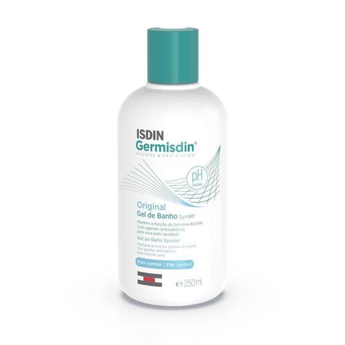 Isdin Germisdin 250ml Germisdin foi desenvolvido para a higiene corporal com agentes antissépticos para peles normais. Gel com pH fisiológico de uso diário que mantém a proteção natural da pele e protege-a dos germes de forma eficaz e natural. Sem triclosan. Limpa sem agredir a pele. Modo de uso: 1) Aplique diariamente na pele previamente umedecida na banheira ou no chuveiro; 2) Massageie até obter espuma e enxágue. 3) Também pode ser utilizado para lavar as mãos.