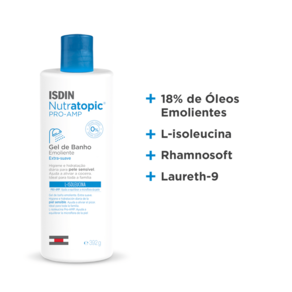 O Gel de Banho ISDIN Nutratopic Pro-Amp mantém o pH da pele equilibrado, hidrata e restaura a barreira cutânea, aliviando a coceira provocada pelo ressecamento excessivo. Aumenta as defesas da pele e ajuda a inibir a adesão bacteriana, interrompendo o ciclo inflamatório.