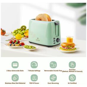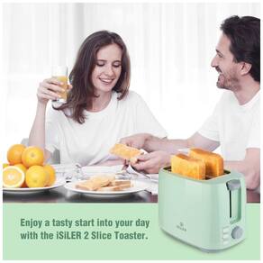 Torradeira iSiLER de 2 fatias com 7 níveis de tostagem, 750W de potência, slots extra largos, funções de descongelamento e reaquecimento, bandeja de migalhas removível e corpo em PP.Permite ejeção manual