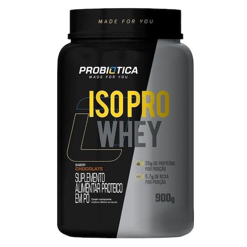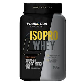 Iso Pro Whey (900g) - Sabor: Chocolate Iso Pro Whey (900g) - Probiótica ISOPROWHEY tem como base a Microfiltered Whey Protein Isolate (proteína isolada do soro de leite), uma proteína obtida por processo de microfiltração do soro de leite, que resulta num produto de alta concentração proteica com baixos teores de gordura e lactose. Possui vitaminas e minerais, fornecendo aproximadamente 50% da recomendação diária desses micronutrientes por porção. ISOPROWHEY é instantâneo, assim você pode prepará-lo misturando com uma colher, de forma prática e rápida, encontrado em deliciosos sabores. BENEFÍCIOS ISO PRO WHEY: - Alto valor biológico; - Coadjuvante na formação de massa muscular; - Recuperação muscular pós-treino; - Fácil digestão;- Rápida absorção;- Aporte de vitaminas e minerais;- Low fat;- Low Carb.