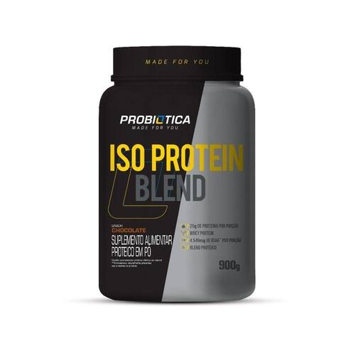 Iso Protein Blend (900g) - Sabor: Chocolate Iso Protein Blend (900g) - Probiótica O ISO PROTEIN BLEND fornece 25g de proteína por porção, sendo um grande aliado para auxiliar na formação dos músculos e ossos. Possui uma excelente combinação entre proteína isolada da soja e proteína concentrada do soro do leite (WPC), o que o torna um produto completo e de alta qualidade para utilização diária. As proteínas são nutrientes fundamentais tanto para sedentários quanto para atletas profissionais. A quantidade e os horários do consumo destes nutrientes podem determinar aspectos importantes relacionados à saúde e também à composição física do indivíduo (percentual de gordura e de massa magra). Benefícios: - 25g de proteínas, por porção;- Alta quantidade de BCAAs;- Ganho de Massa Muscular;- Recuperação Muscular;- Melhora da Performance Muscular;- Aumento de Volume Corporal.