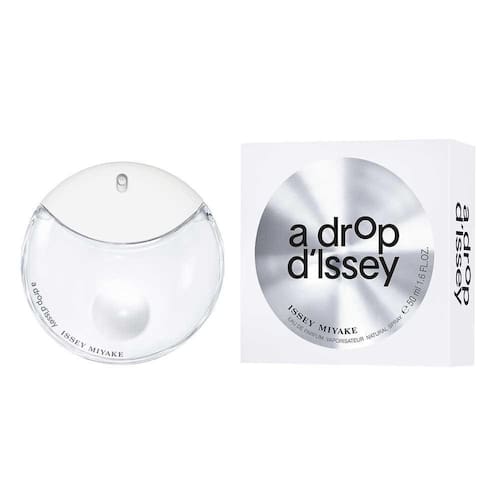 Ao combinar a simplicidade de uma forma arredondada perfeita com a transparência do vidro 5% reciclado, basta olhar através do frasco para descobrir um efeito ótico de lupa, com ampliação e distorção. Surge então a ocasião de ver as coisas de forma diferente, de dar espaço à poesia e à imaginação. A tampa branca, macia ao toque, integrada no frasco, permite difundir o perfume apenas com uma leve pressão. O frasco-gota a drop dIssey foi criado para ser colocado na horizontal.