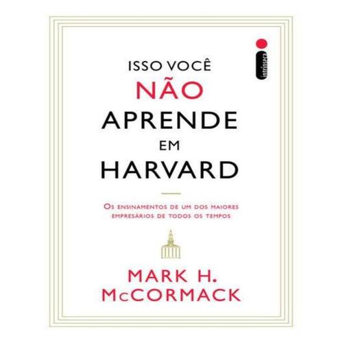 Bestseller Internacional Este Clássico Do Mundo Dos Negócios Oferece Orientações Poderosas Para Uma Vida Profissional De Sucessoas Pessoas Costumam Reagir De Forma Bastante Similar À Simples Menção Ao Nome Harvard É A Mais Renomada Instituição De Ensino Do Mundo Que Forma Profissionais De Elite No Mundo Dos Negócios Essa Influência É Ainda Mais Poderosamas Como Infere O Título Deste Clássico Lançado Originalmente Em 1984 Nem Tudo Se Aprende Nas Salas De Aula Mesmo Nas Da Prestigiosa Harvard E Quem Garante A Importância E A Eficácia Do Empirismo É Um Dos Executivos Mais Bemsucedidos Da História Mark H Mccormack Considerado O Inventor Do Modelo De Marketing Esportivo Que Até Hoje Orienta O Mercado Globalele Fundou O International Management Group Que Ao Longo De Quatro Décadas Se Transformou Em Um Negócio Multimilionário E Altamente Influente Em Isso Você Não Aprende Em Harvard Ele Revela O Segredo De Seu Sucesso E Preenche Importantes Lacunas Entre A Educação Formal E O Tipo De Conhecimento Que Só Se Obtém Da Experiência Cotidiana Administrando Uma Empresa E Liderando Pessoas Até Hoje O Clássico De Mccormack Segue Sendo Leitura Obrigatória Para Executivos E Gerentes De Todos Os Níveis Sejam Eles Detentores Ou Não De Mbas As Habilidades Técnicas E Sabedoria Adquiridas Pelo Autor E Aqui Apresentadas De Forma Acessível E Envolvente São A Chave Para Uma Vida Profissional De Sucesso