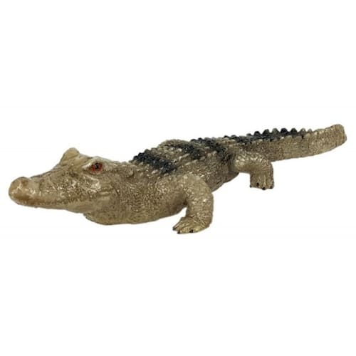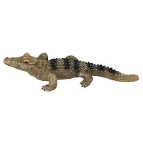 Jacare de Resina Pequeno Enfeite de Jardim Material Resina Animal de resina bastante realístico Acabamento perfeito Pintura feita a mão com tinta de ótima qualidade Peça resistente ao tempo sol e chuva pode ser colocada em um jardim ou até mesmo próximo de uma fonte de agua. Contem 1 peça na embalagem