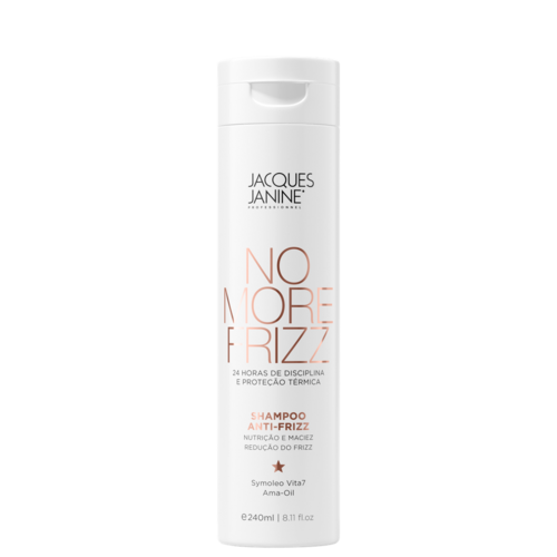 O Shampoo Jacques Janine Professionnel No More Frizz proporciona uma blindagem leve e natural, ao formar uma película protetora contra a umidade sem pesar na aparência, graças à sua fórmula enriquecida com Óleos Nobres para garantir que as cutículas fiquem seladas por muito mais tempo.