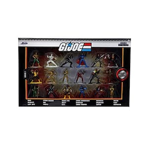 Adicione à sua coleção de séries icônicas de heróis americanos com as nano figuras do G.I. Joe! Este pacote 18 vem com todos os seus personagens favoritos. Com semelhanças autênticas de caráter, essas figuras de 1,65" feitas de 100% de die-cast certamente traremos de volta uma gloriosa sensação da nostalgia dos anos 1980! Seja um verdadeiro herói americano! Recolham todos para se defender do Comandante Cobra e suas forças cobra para nos salvar da dominação mundial!