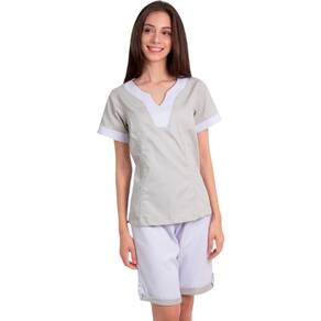 Jaleco Camareira Limpeza Mangas Curtas Bege - Bege - M