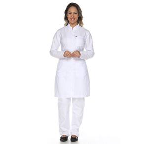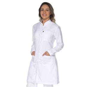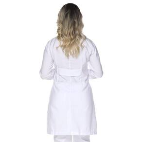 Jaleco feminino manga longa ACINTURADO é confeccionado em Microsarja, tecido 100% poliéster.