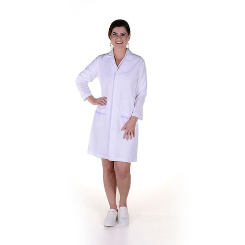 Especificações: Jaleco Feminino Profissional de Microfibra Manga Longa - Branco