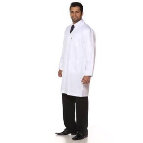 Jaleco masculino manga longa é confeccionado em Gabardine, tecido 100% poliéster.