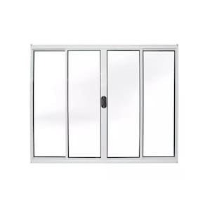 Janela 100x120 4 Folhas Vidro - Alumínio Branco - Linha 18 Modular Janela de correr com 2 folhas de vidro fixas e 2 folhas de vidro móveis (de correr). Fecho central. Já vem com vidro incluso e pronta para instalar. Não enferruja. De fabricação própria.
